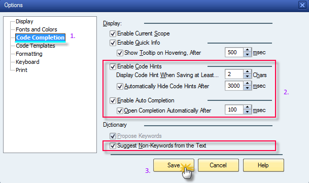 On the tab ‘Code Completion’, please change the editor options as shown on the screenshot below.